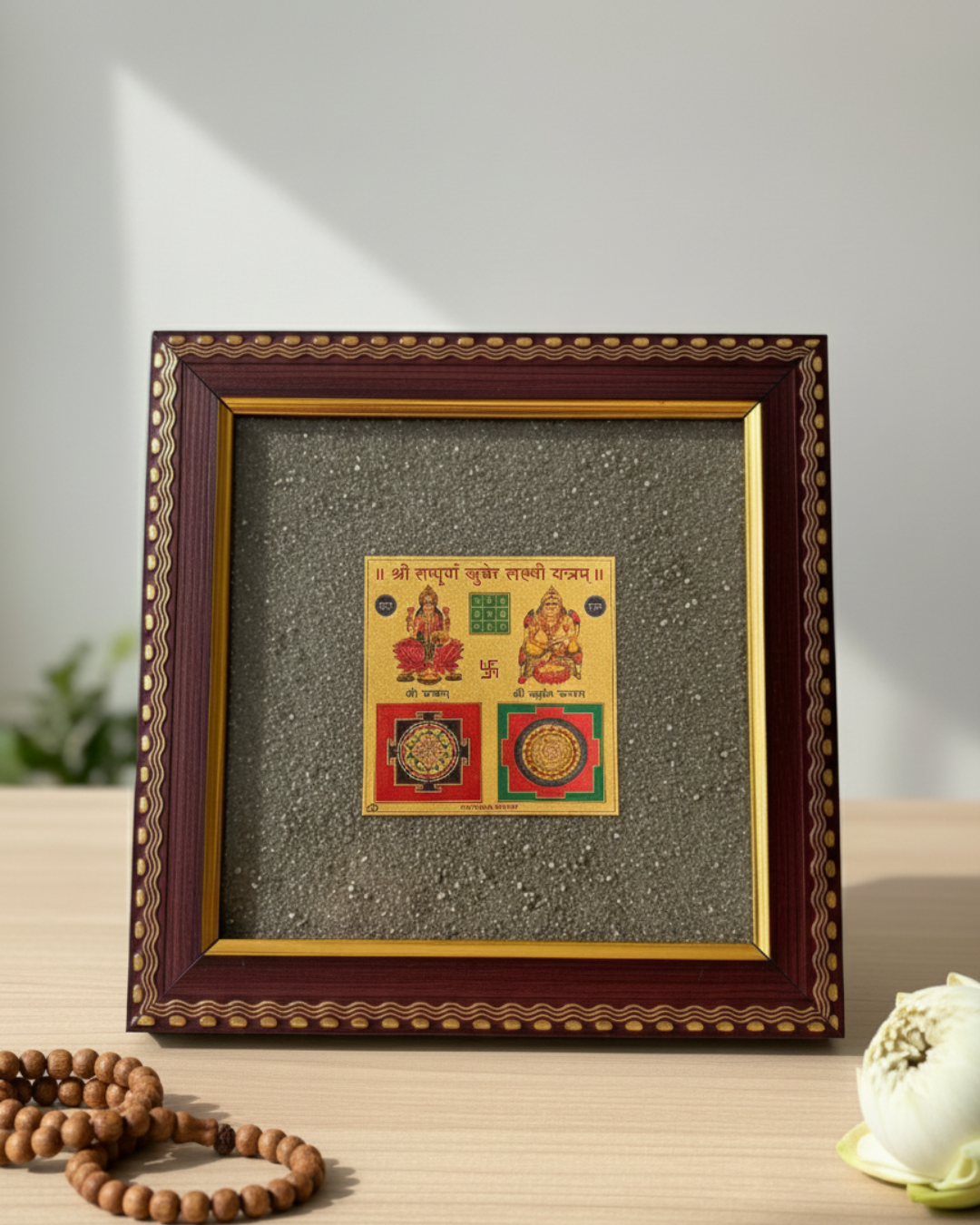 The Shree Kuber Lakshmi Yantra Frame is designed to invite wealth, abundance, and good fortune into your space. This sacred yantra combines the energies of Goddess Lakshmi and Lord Kuber, amplifying financial growth and stability. Placing it at your entrance, office, or prayer area helps open pathways to success and prosperity while keeping negative energies away. 🌿